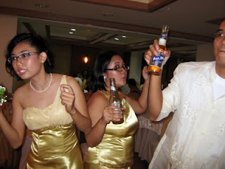 When the oldies got back the girls went out to the salon - Krista and I were sent off to Uncle Ed's hotel (Hotel Alejandro, very charming, but I don't have a flyer. LOL.) where Auntie Oda and Kriz were getting ready. So yeah -- in effect, we had our makeup done by the same people who did the bride and her maid of honor. YES WE CHEATED SO WHAT. haha.